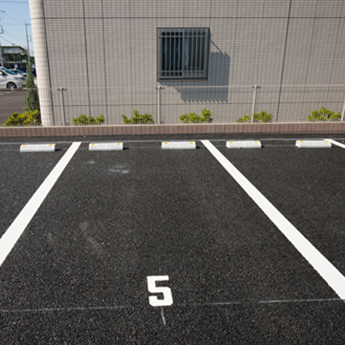 アスファルトの駐車場、もちろんラインや車止めの設置を施工いたします。